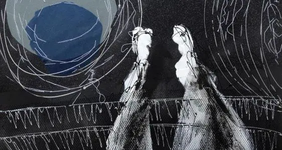 Amal Al-Aathem’s exquisitely raw mixed media paintings have a lot to say — and yet they speak in riddles, remaining mysterious, and deliberately so. For hers is a milieu of pattern and poetry, symbolism and struggle, individual identity and a complex cultural tradition that both inspires and defines. In her simultaneously rough and sophisticated compositions one encounters expressive abstract gestures that convey powerful emotion, even as this same vigorous abstraction functions as elements of the very landscapes and figures it inhabits and surrounds. In this way, her imagery itself and the specific ways in which it is rendered to the surface both have active roles to play in extending her message of sublimated power and the agitated heart.